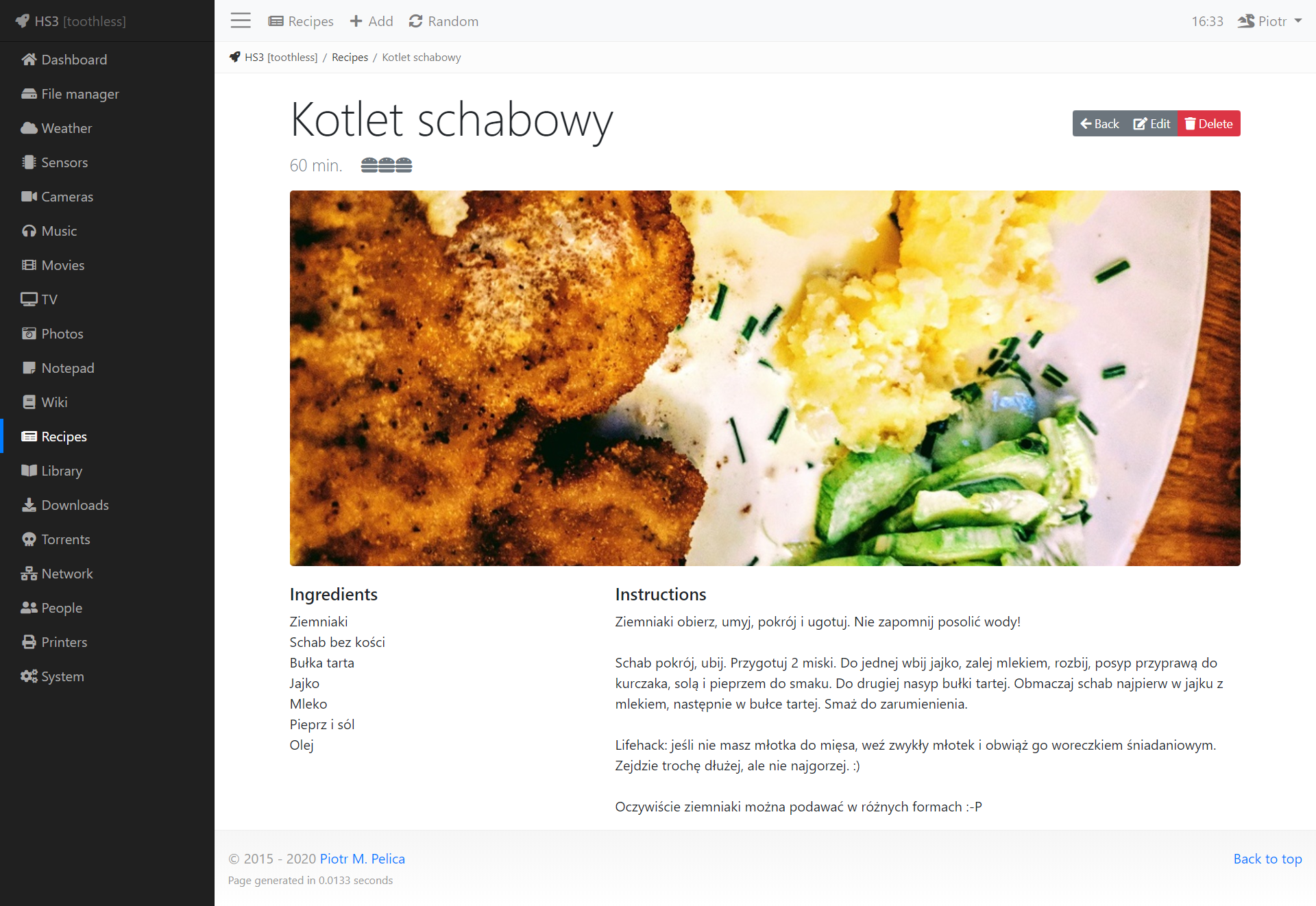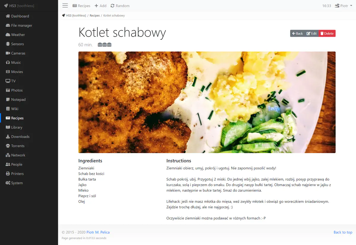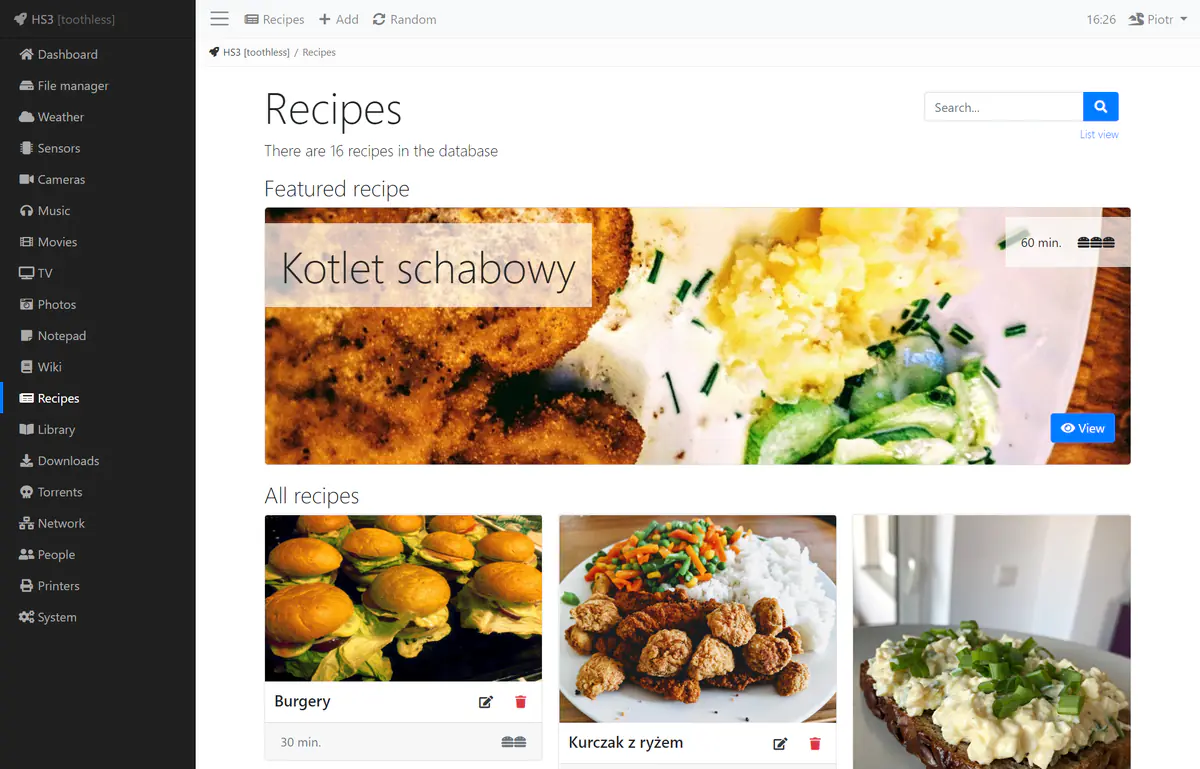 The recipes module got a nice redesign. It now has a featured recipe function, which takes a random recipe every half an hour. The rest of them is listed below as cards.