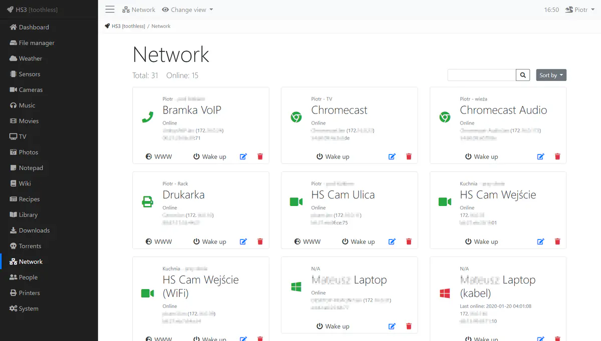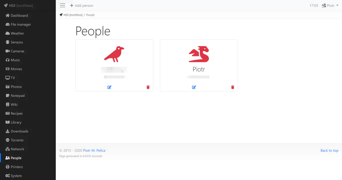 The addition to the Network module is People. What it basically does is a check whether the device assigned to specific person is connected to the HS3’s network. If so, marks that person as currently at home. Works great with smartphones 🙂